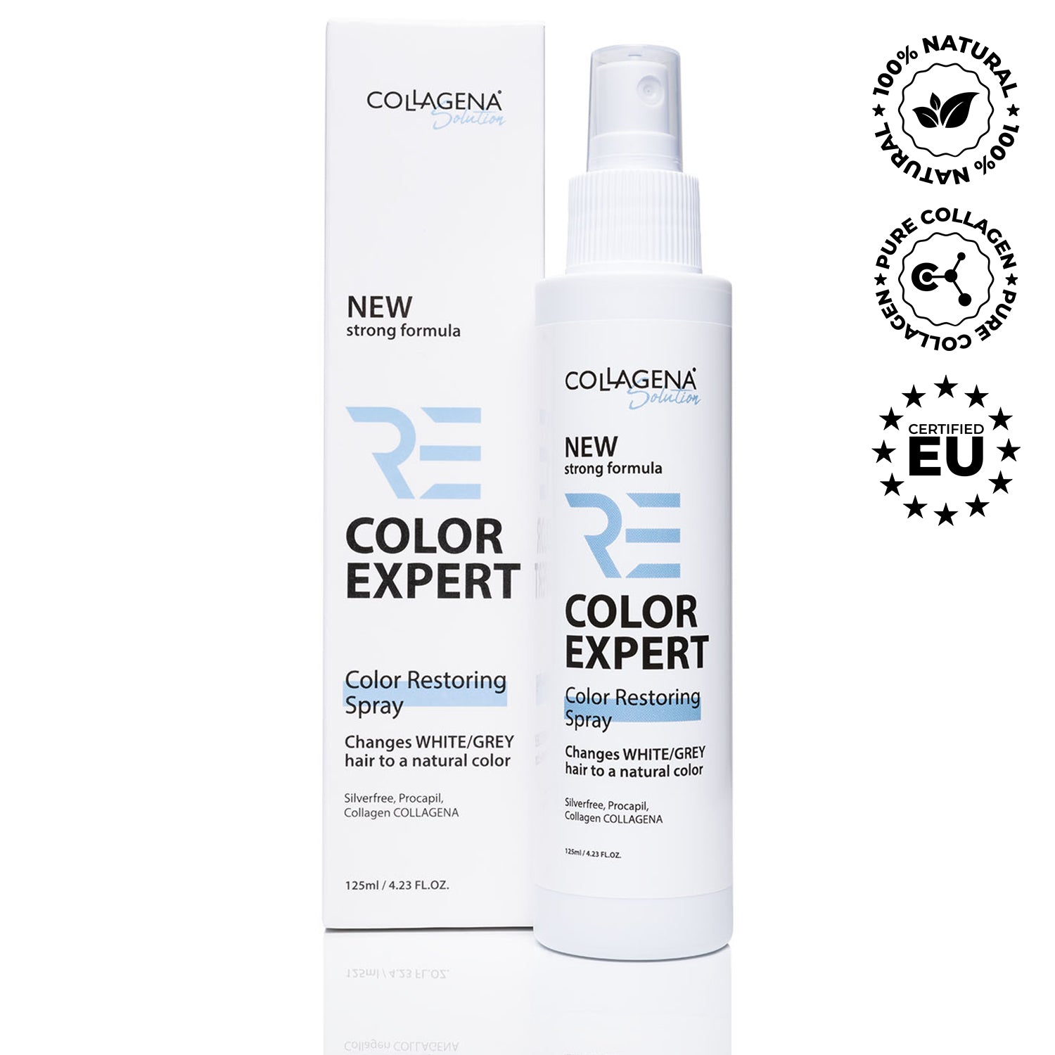 REcolor EXPERT NOU Formula Puternică spray pentru restabilirea culorii naturale a părului alb-grizonat, COLLAGENA Solution, 125 ml.